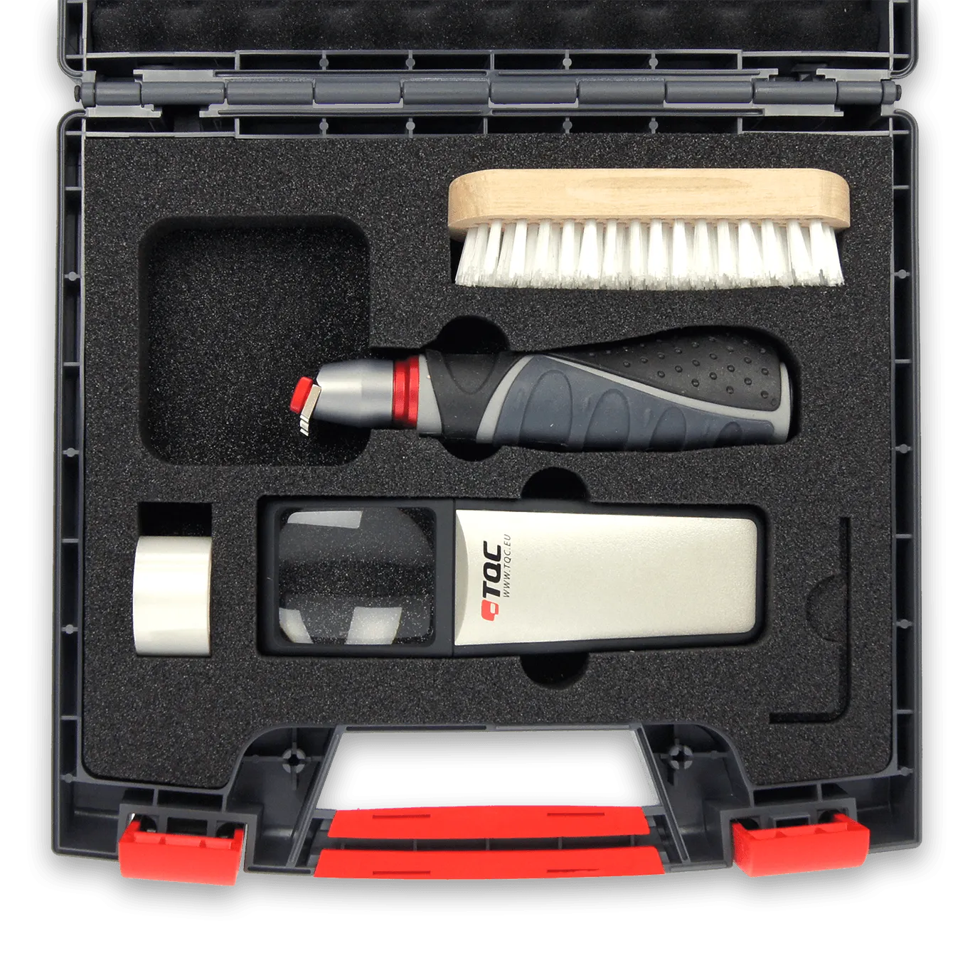 This test kit brings together the core instruments required to perform these evaluations in one convenient setup. It allows coating laboratories, powder coaters and inspection bodies to perform consistent quality control checks and verify that coatings comply with the required technical specifications.
