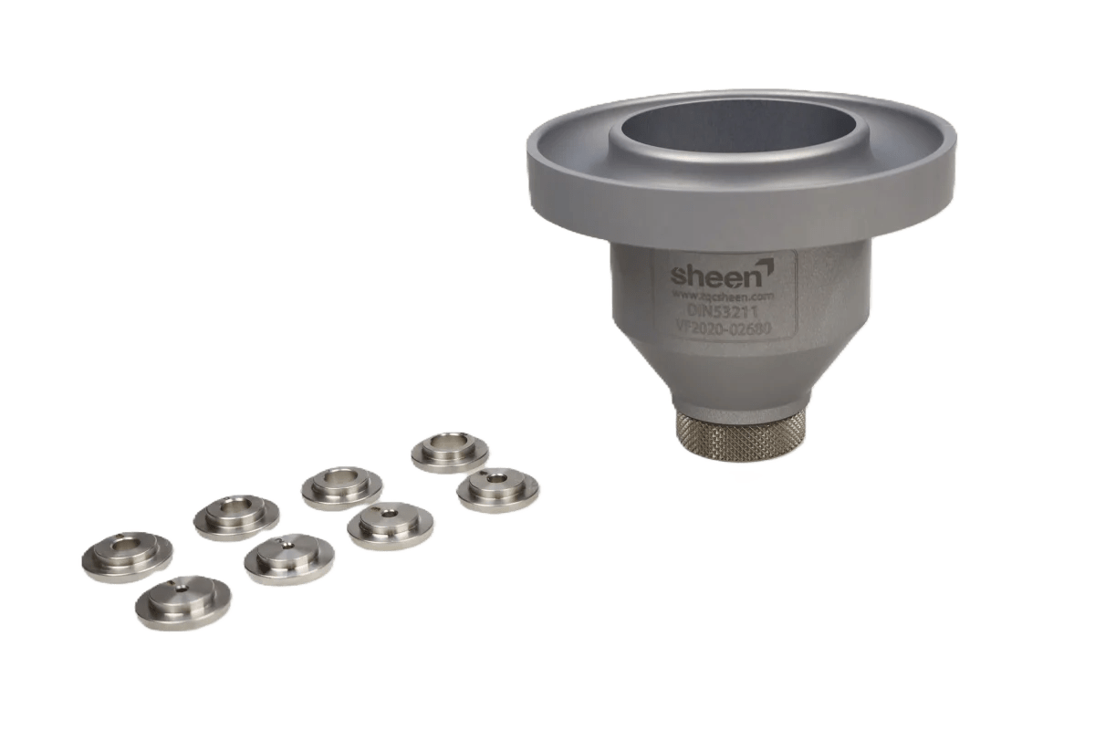The TQC Sheen Viscosity Cup DIN 53211 (Interchangeable Nozzle) is a versatile and high‑quality flow cup designed to measure the viscosity of paints, coatings, lacquers and similar fluids. The cup features a durable body (titanium anodized aluminum) and uses interchangeable stainless‑steel nozzles, allowing you to choose the appropriate orifice size for your specific viscosity testing needs. The interchangeable-nozzle design ensures flexibility and precision across a wide viscosity range — ideal for production, quality control, and laboratory environments.